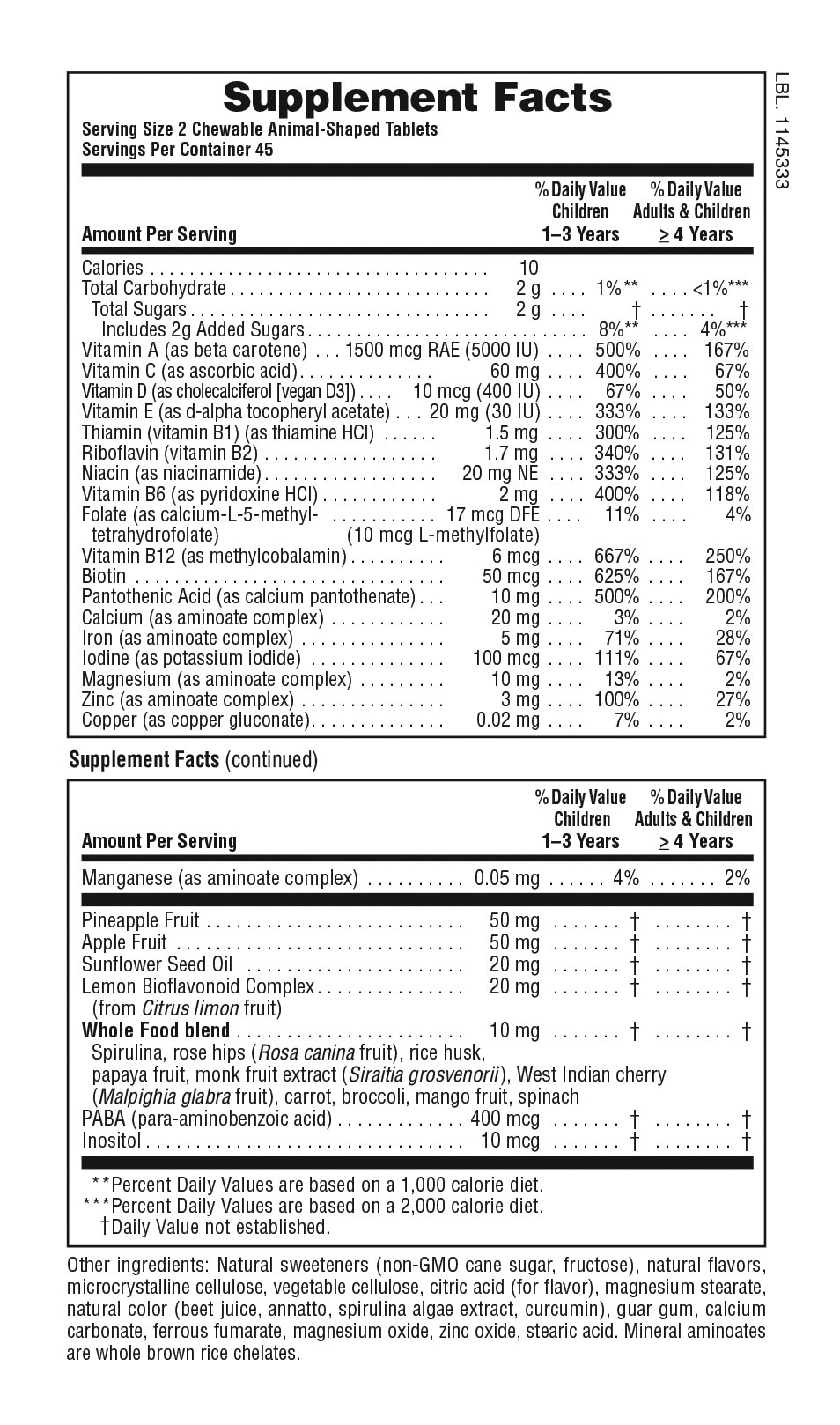 As a dietary supplement for children 2 years and older: take 2 chewables once daily.