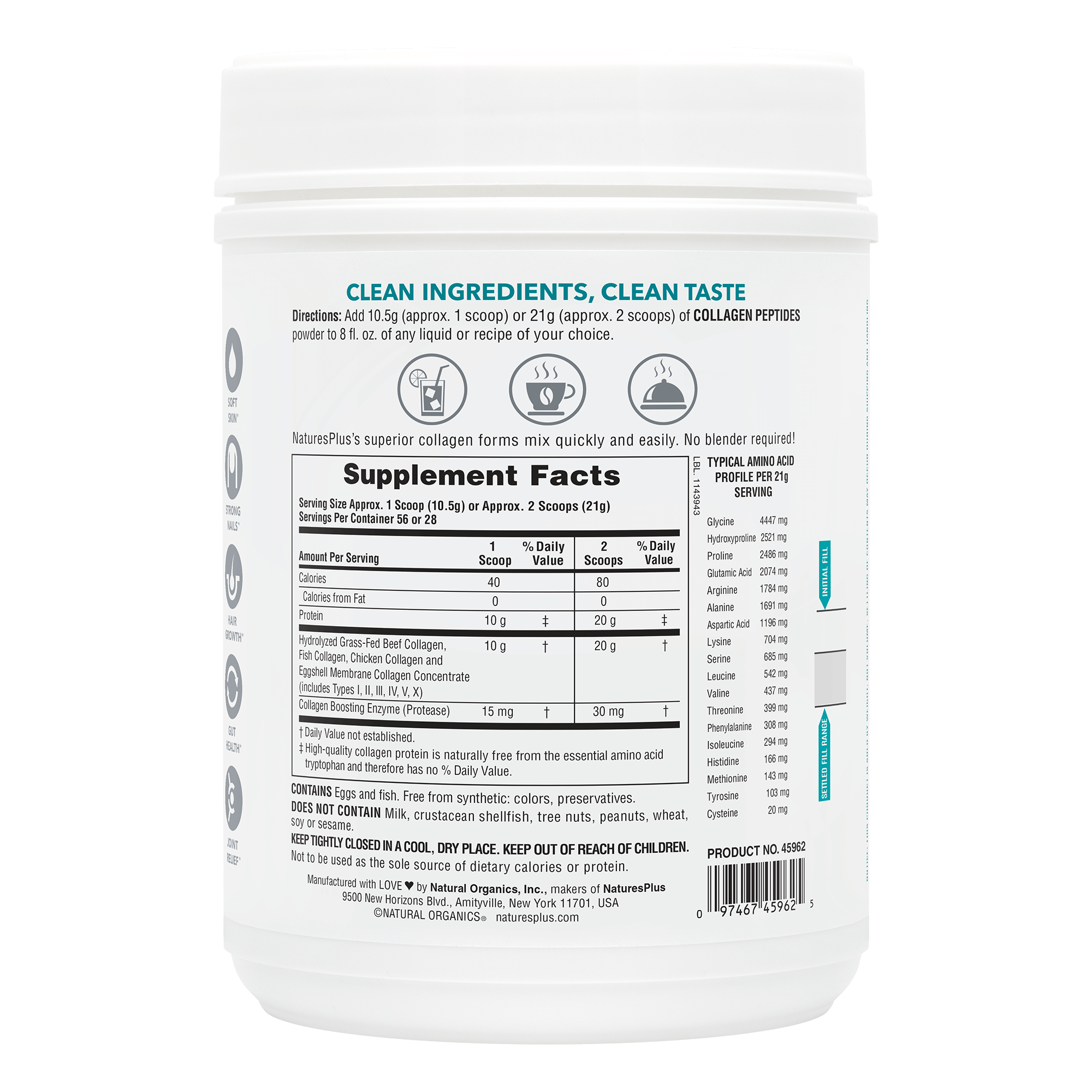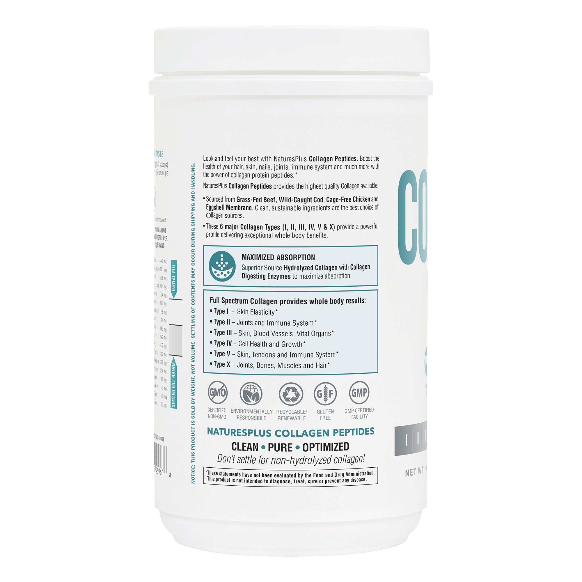 Collagen is key to healthy hair, skin, nails and joints. NaturesPlus Collagen Peptides delivers six types of hydrolyzed collagen for fast absorption and full-body support.*
