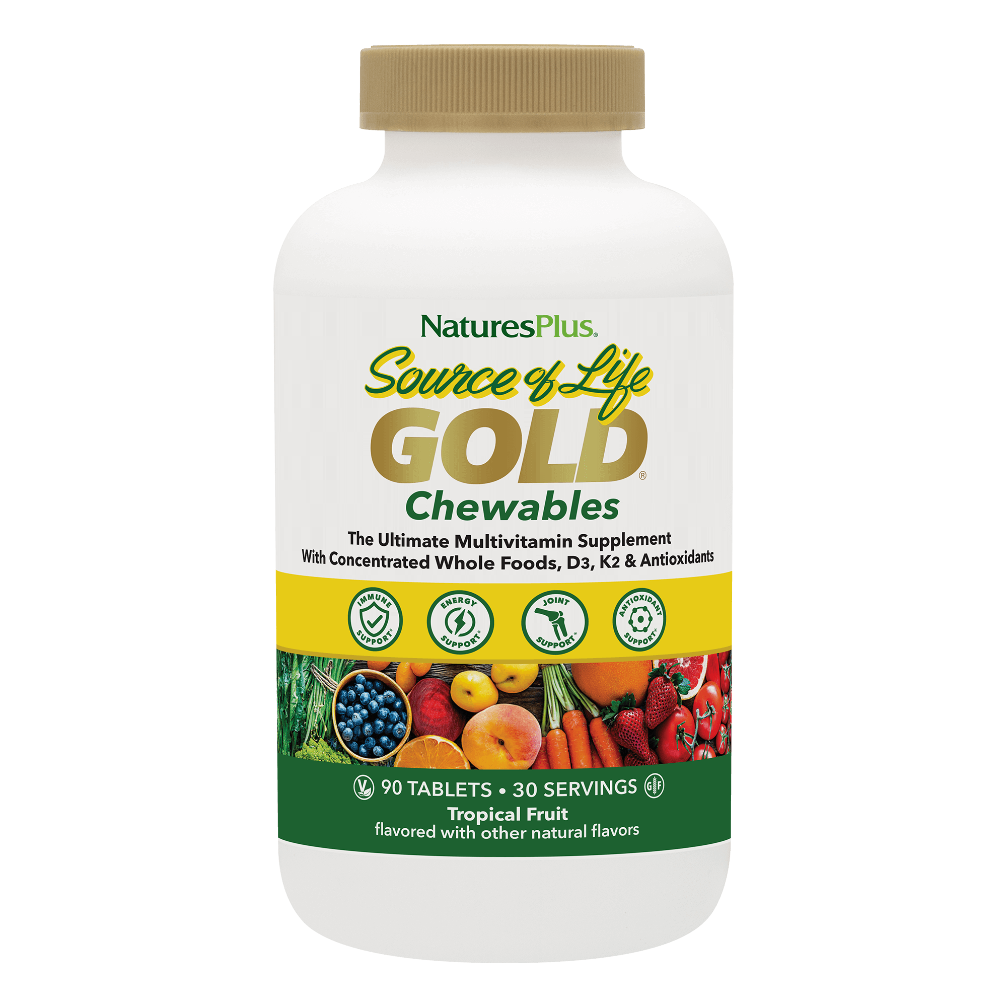 Source of Life GOLD Chewables deliver the next level of whole food-based nutrition. Packed with over 120 organic fruits and vegetables, Source of Life GOLD Chewables support clean, sustained energy and total-body wellness to help you thrive every day.*