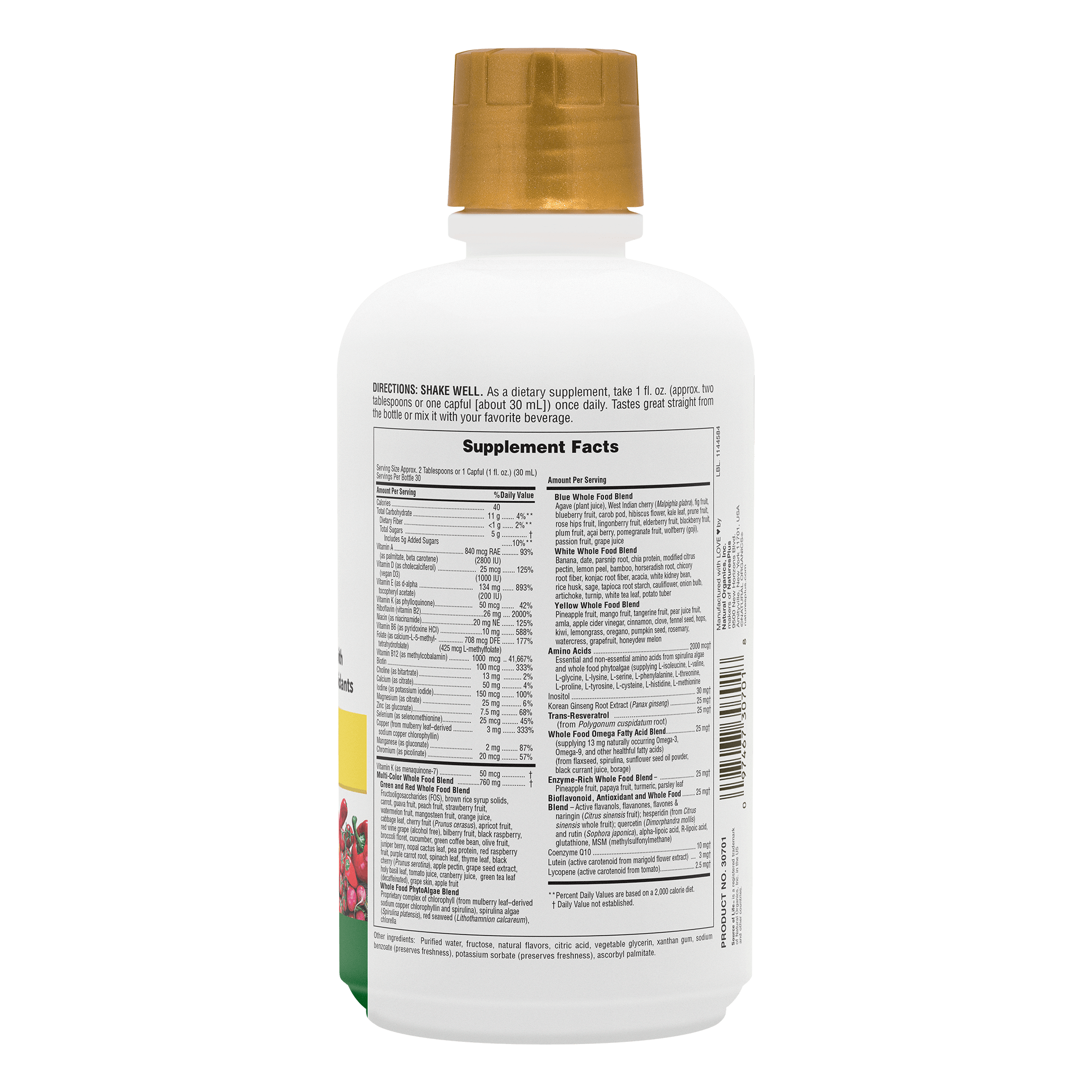 Source of Life GOLD Liquid delivers the next level of whole food-based nutrition. Packed with over 120 organic fruits and vegetables, Source of Life GOLD Liquid supports clean, sustained energy and total-body wellness to help you thrive every day.*