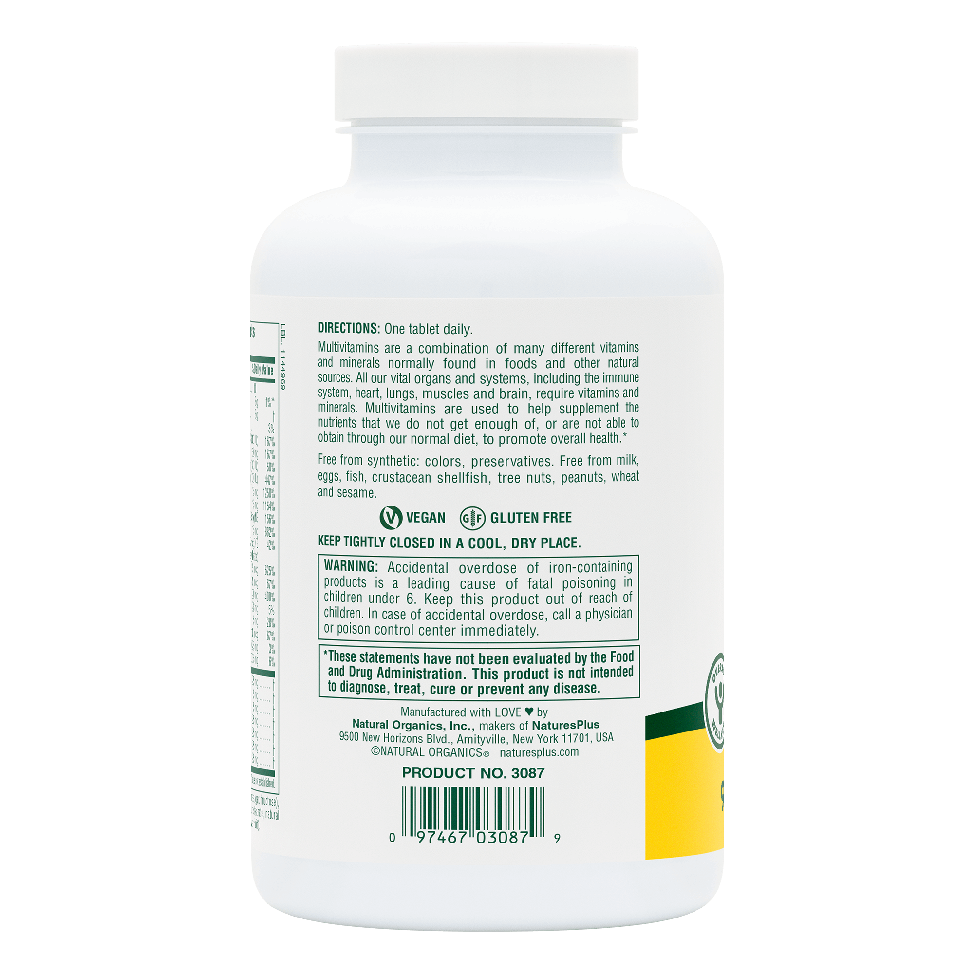 WARNING: Accidental overdose of iron-containing products is a leading cause of fatal poisoning in children under 6. Keep this product out of reach of children. In case or accidental overdose, call a physician or poison control center immediately.