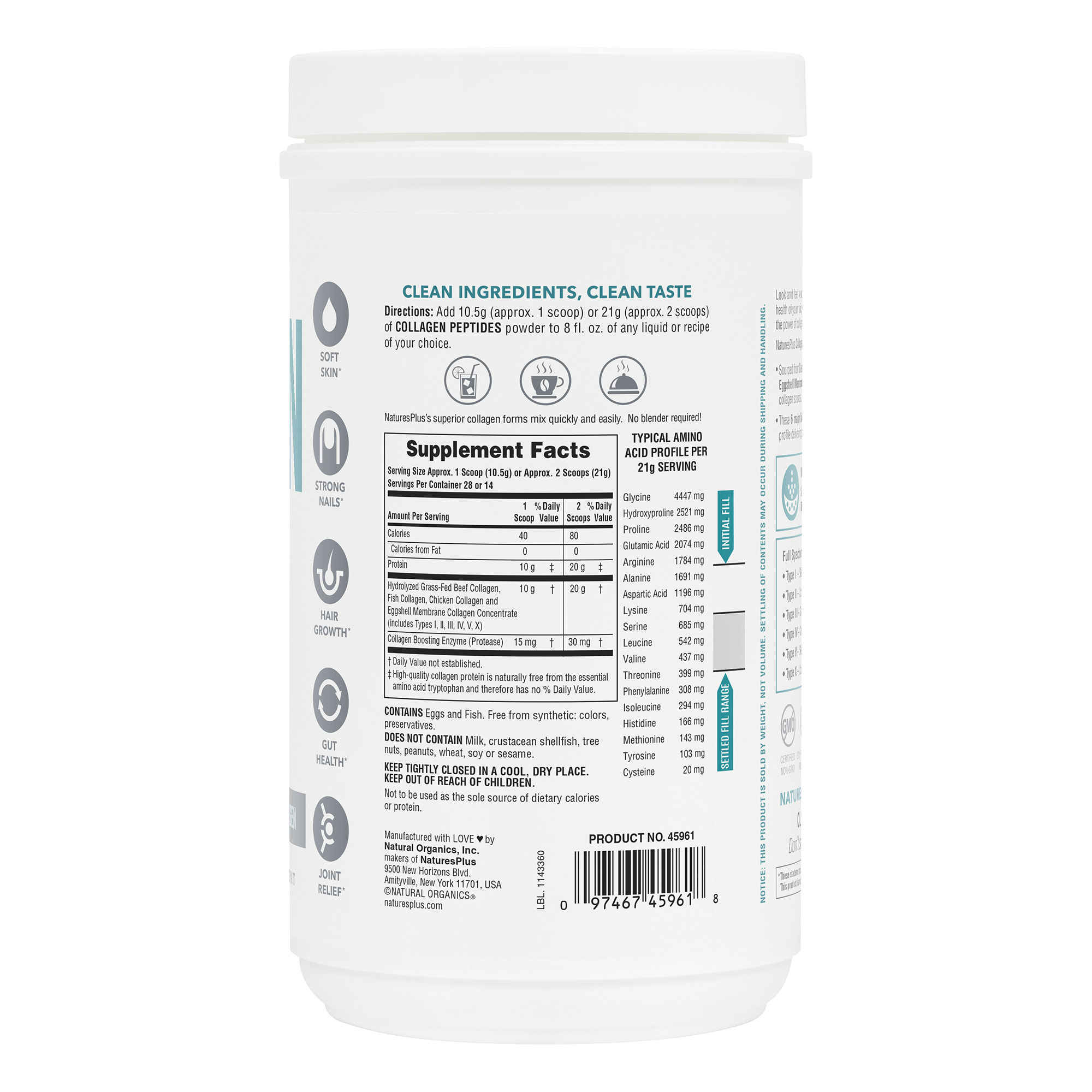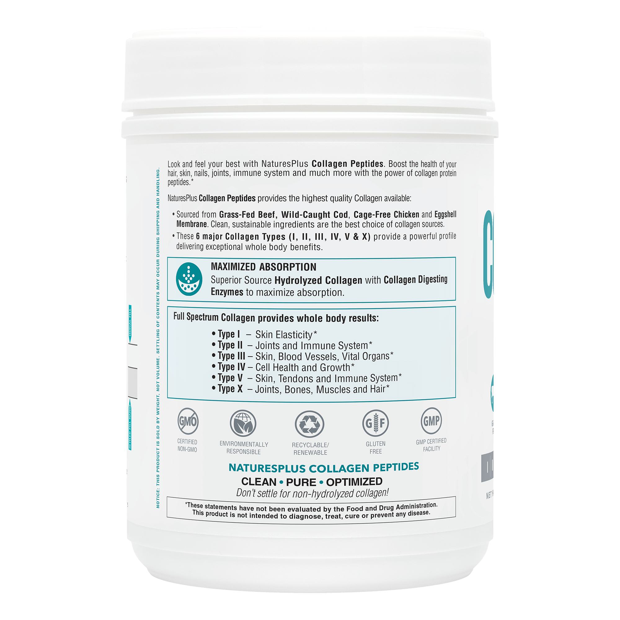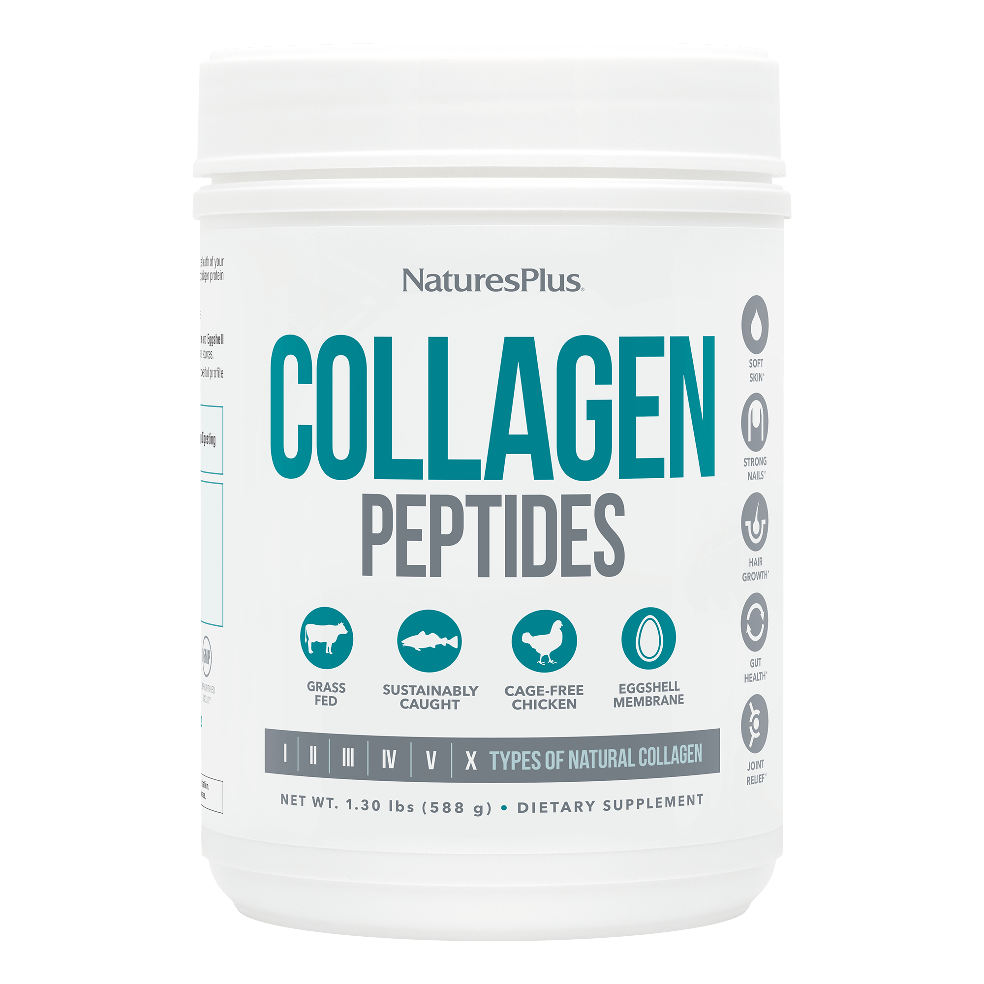 Collagen is key to healthy hair, skin, nails and joints. NaturesPlus Collagen Peptides delivers six types of hydrolyzed collagen for fast absorption and full-body support.*