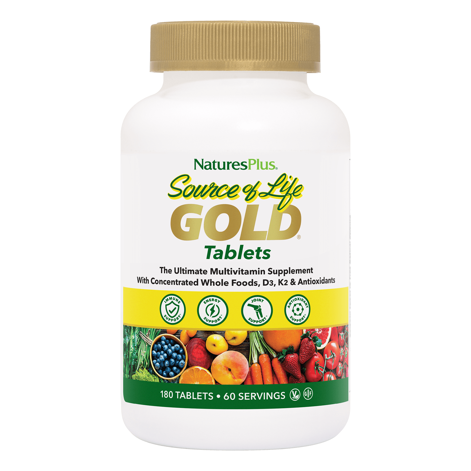 Source of Life GOLD Tablets deliver the next level of whole food-based nutrition. Packed with over 120 organic fruits and vegetables, Source of Life GOLD Tablets support clean, sustained energy and total-body wellness to help you thrive every day.*