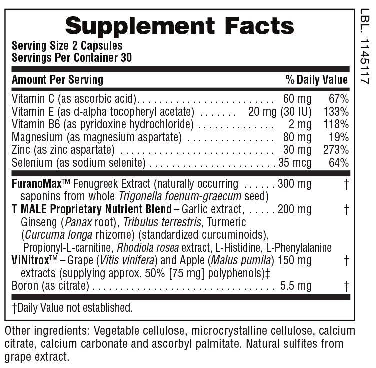 T MALE is a hormone balance supplement for men, featuring botanicals and a unique fenugreek extract—without synthetic hormones.*